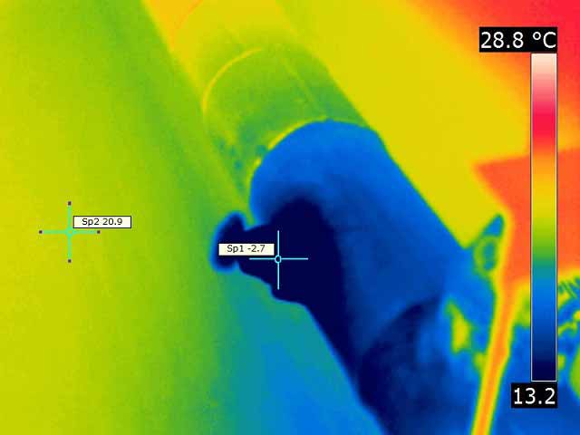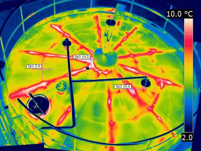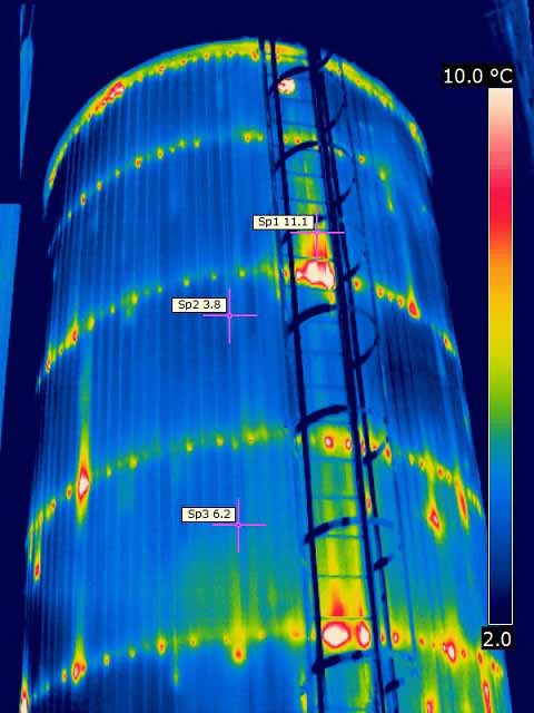 Występowanie takich obszarów może świadczyć o uszkodzeniach warstw termoizolacyjnych zbiorników, rurociągów, komór chłodniczych, itp. jak również może być wynikiem wycieków różnych substancji lub czynników grzewczych lub chłodniczych.