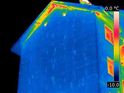 Sposobem na jednoczesne wyeliminowanie obydwu czynników zakłócających jest wykonanie zdjęć od strony wewnętrznej. Obraz wewnętrznej powierzchni dachu (najczęściej jest to sufit) bezpośrednio wskazuje miejsca najbardziej intensywnej wymiany ciepła (mostki cieplne).